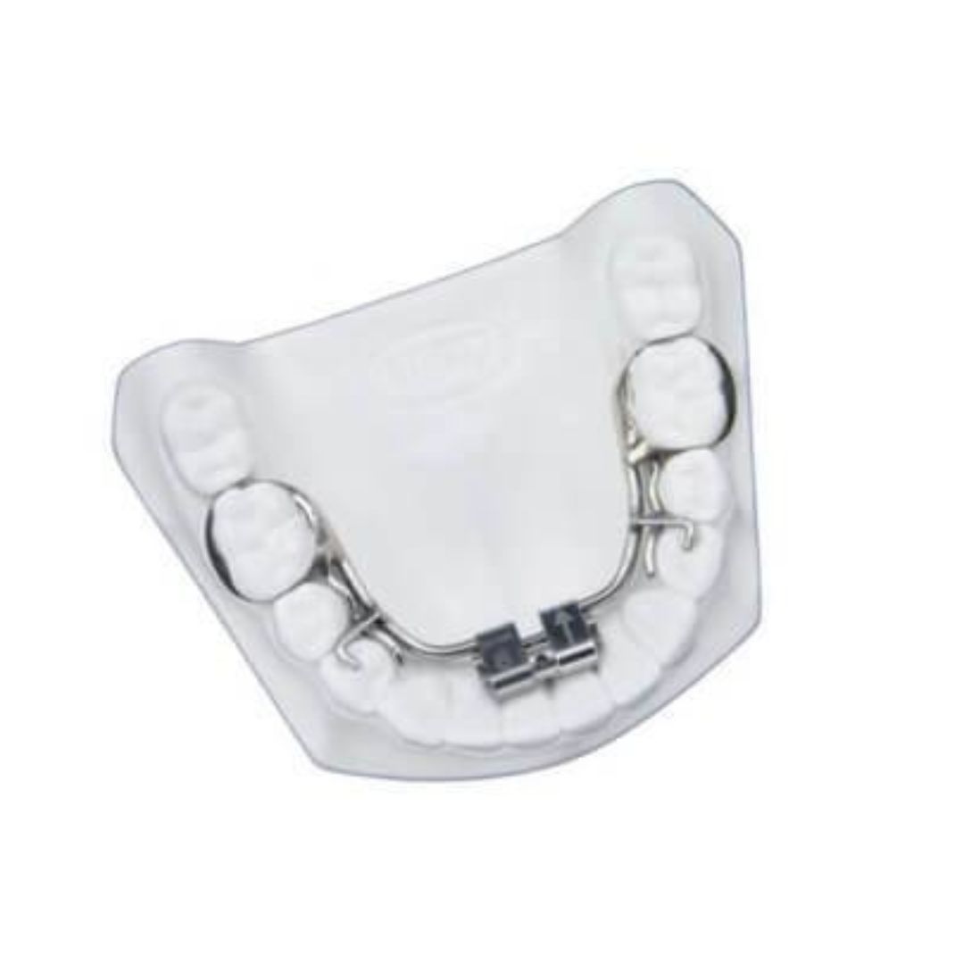 El expansor para arcada inferior Leone esta caracterizado por un tamaño notablemente inferior respecto a los otros expansores rápidos, tiene 2 brazos extra largos que permiten un eventual apoyo anterior garantizando una óptima estabilidad y el máximo confort para el paciente.