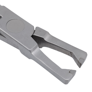 La pinza removedora de brackets Omax, también conocida como alicate para retirar brackets, esta diseñada para descementar todos brackets. Puede utilizarse mesial-distal (horizontal) o incisal-gingival (vertical) en la zona anterior y su ángulo es perfecto para un fácil acceso a áreas posteriores difíciles.