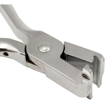 - Una pinza que hace dos curvaturas compensadas de .030. Uno, la punta da un paso hacia arriba; al invertir la pinza, da un paso hacia abajo.