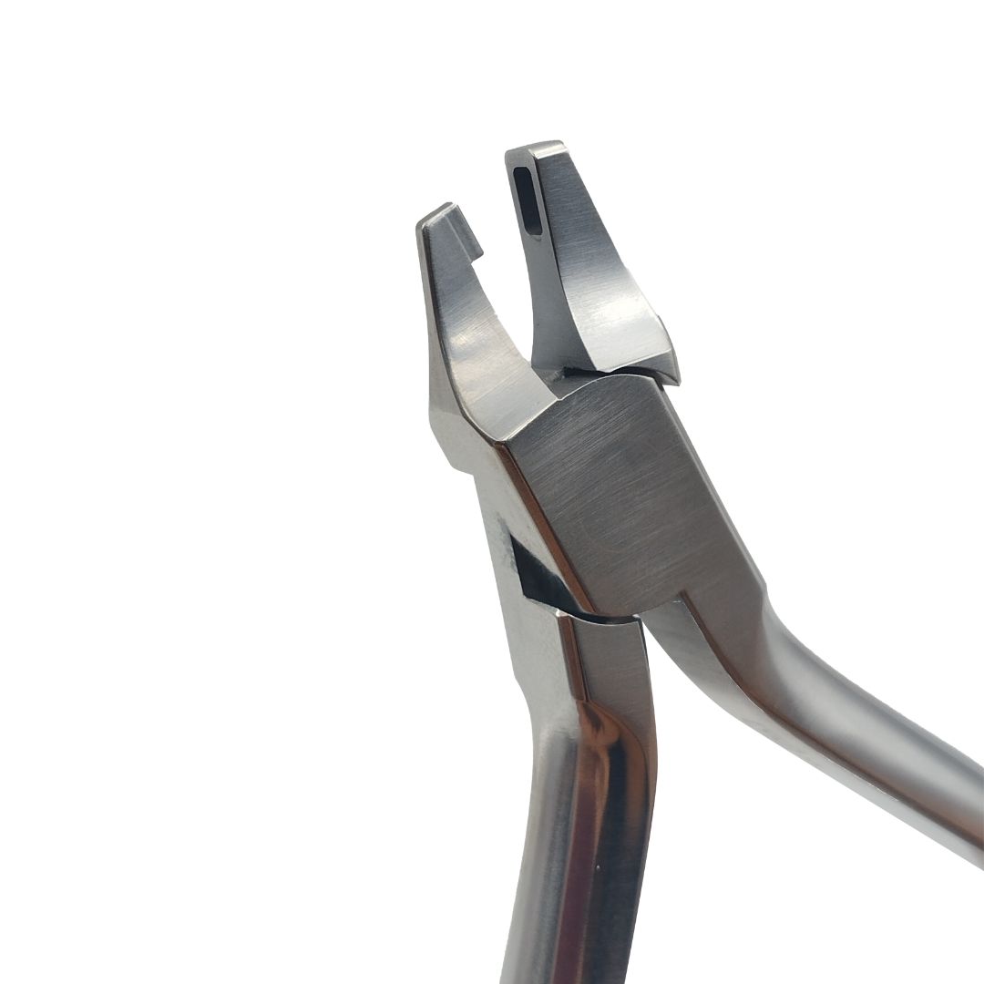 La pinza vertical GC Orthodontics, también conocida como alicate para alineadores, se utiliza para crear una indentación en la línea mesial o distal, ángulos en el lingual y / o bucal de un diente específico para enfatizar la corrección excesiva de rotaciones.