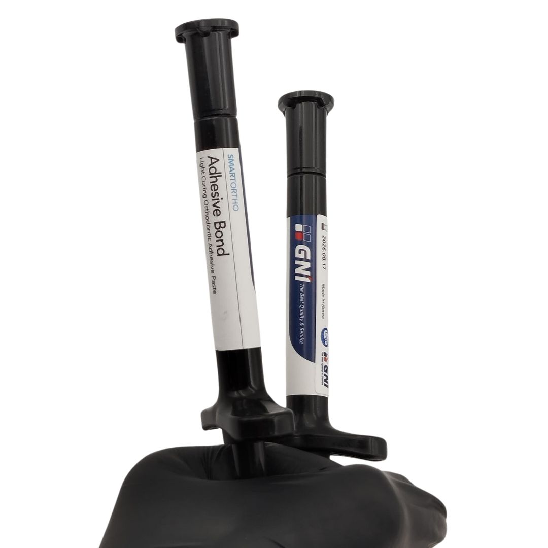 La resina de curado ligero GNI es una pasta adhesiva de ortodoncia fotopolimerizable. Es una opción fuerte y duradera para la cementación de brackets.